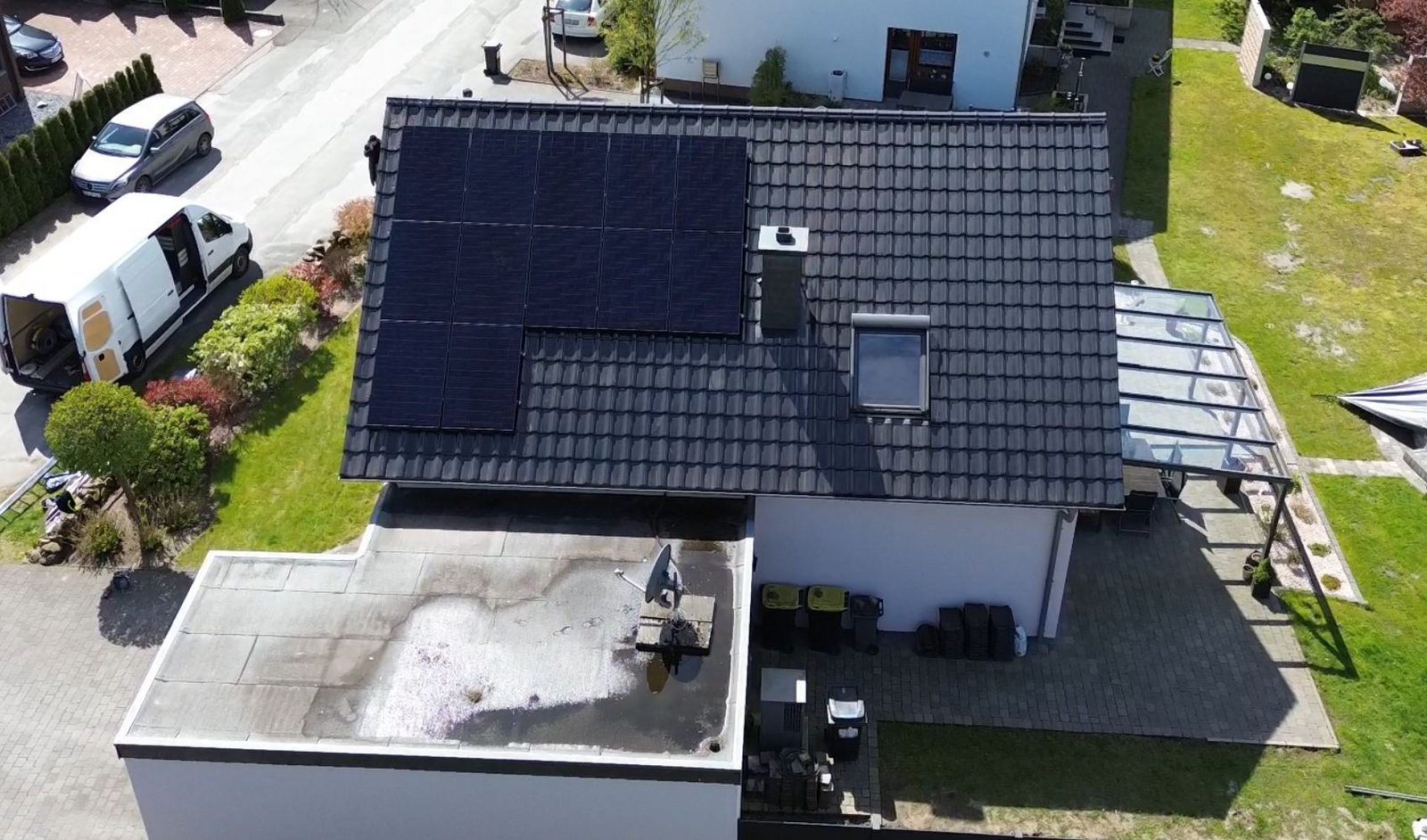 Der Kunde hat sich für eine eindrucksvolle 13,94 kWp PV-Anlage von uns entschieden, die speziell auf seine Bedürfnisse zugeschnitten ist. Die Anlage besteht aus 34 hochwertigen Jolywood-Modulen, die für eine effiziente und zuverlässige Energieerzeugung bekannt sind. Um die erzeugte Energie optimal zu nutzen, haben wir zwei Sungrow Hybrid Wechselrichter eingesetzt: den SH5.0RT mit einer Kapazität von 5kW und den SH8.0RT mit einer Kapazität von 8kW. Diese Wechselrichter ermöglichen eine nahtlose Umwandlung der Solarenergie in nutzbaren Strom für den Haushalt von dem Kunden. Zusätzlich haben wir den leistungsstarken Sungrow Premium Speicher SBR096 mit einer Kapazität von 9,6kW integriert, um überschüssige Energie zu speichern und später zu verwenden. Diese intelligente Speicherlösung trägt dazu bei, den Eigenverbrauch zu maximieren und den Bezug von Netzstrom zu reduzieren.